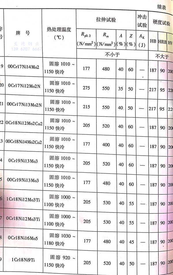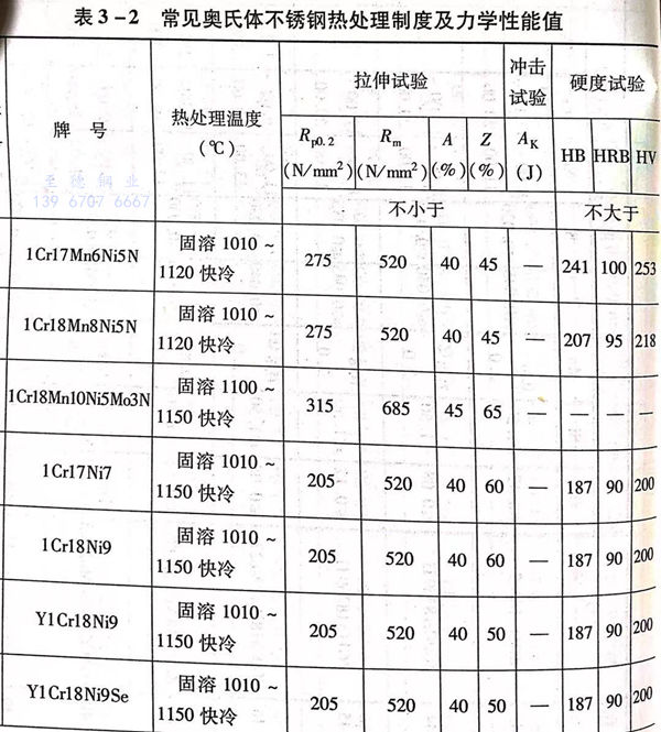常見奧氏體不銹鋼固溶化熱處理(li)后的力學性能見表(biao)3-2。