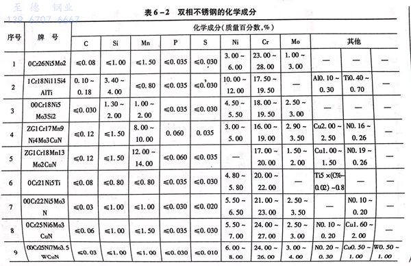 00Cr25Ni7Mo3.5WCuN鋼的化學成分見表6-2,機(ji)械性能標(biao)準(zhun)見表6-3。