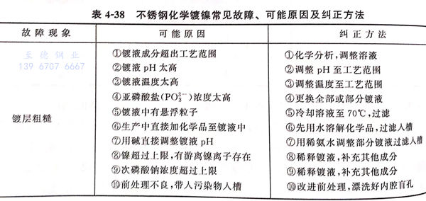 不(bu)銹鋼化(hua)學鍍鎳(nie)常見故障、可能(neng)原因及糾正方法見表4-38.