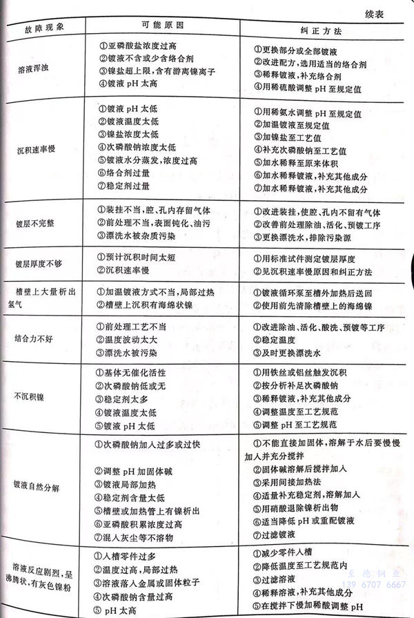 二、不銹鋼化學鍍鎳常(chang)見故障(zhang)、可能原(yuan)因及糾正(zheng)方法