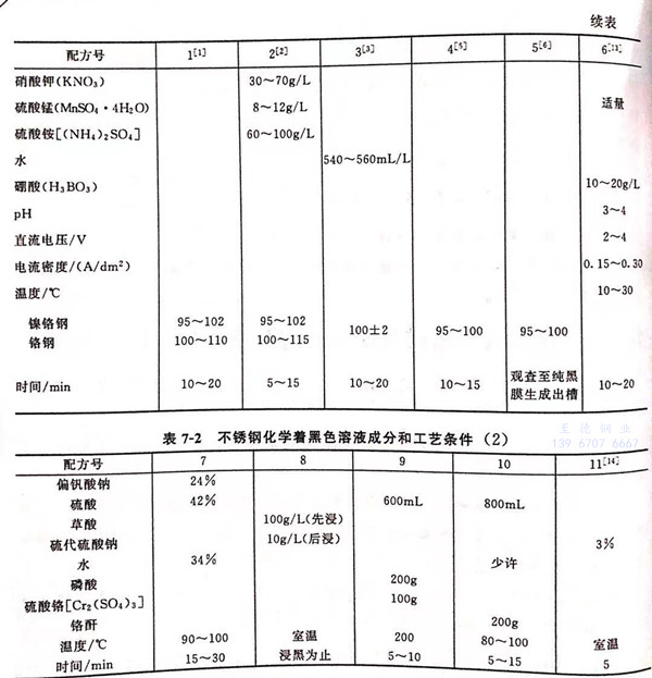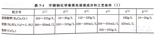 不銹鋼化(hua)學著黑色溶液成(cheng)分和工藝條件見表7-1和表7-2.