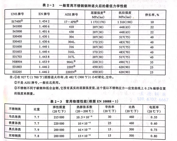 不銹鋼退火后(hou)的最低(di)力學性能(neng)及常(chang)用物理性能(neng)如下: