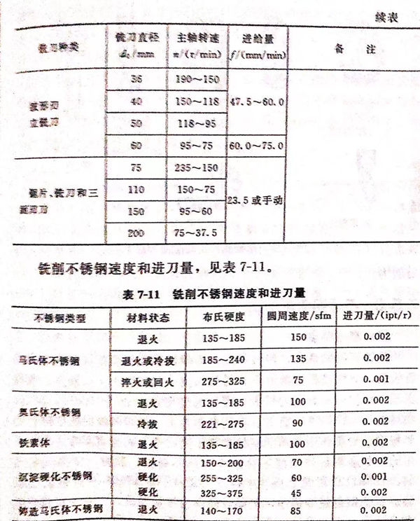 銑(xian)削(xue)(xue)在生產量大(da)到可以證(zheng)明(ming)使用硬質合(he)金刀(dao)(dao)具是合(he)適的(de)(de)(de)(de)場合(he),選用這(zhe)種刀(dao)(dao)具也可以成功地進(jin)行銑(xian)削(xue)(xue)。對于銑(xian)削(xue)(xue),可行的(de)(de)(de)(de)辦法之一是以大(da)約(yue)24m/min的(de)(de)(de)(de)速(su)(su)度(du)(du)開始(shi)切削(xue)(xue),相反地,用高(gao)速(su)(su)鋼(gang)刀(dao)(dao)具銑(xian)削(xue)(xue)的(de)(de)(de)(de)速(su)(su)度(du)(du)為(wei)9m/min,然后增加速(su)(su)度(du)(du),直(zhi)至(zhi)有(you)效而(er)無過分損傷(shang)地進(jin)行切削(xue)(xue)為(wei)止。