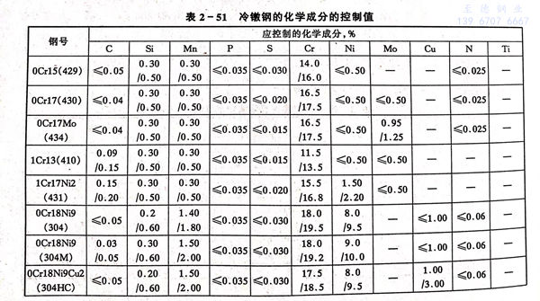 為了順利生產冷(leng)鐓螺(luo)栓對各類(lei)不(bu)銹鋼的化學(xue)成分(fen)予以嚴格控(kong)制,一些常用(yong)牌號(hao)通(tong)常按(an)表2-51規(gui)定(ding)進(jin)行執行。