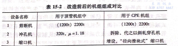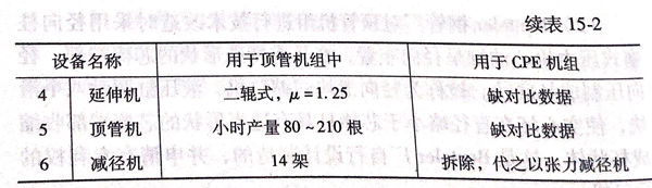 Siegen Weidenau 的 Benteler 香蕉app免費視頻在線觀看:不銹鋼管廠的頂管機組于1985年進行了技術改造,采用CPE軋管工藝,改造前后的機組組成列表對比如表15-2所示。