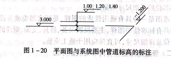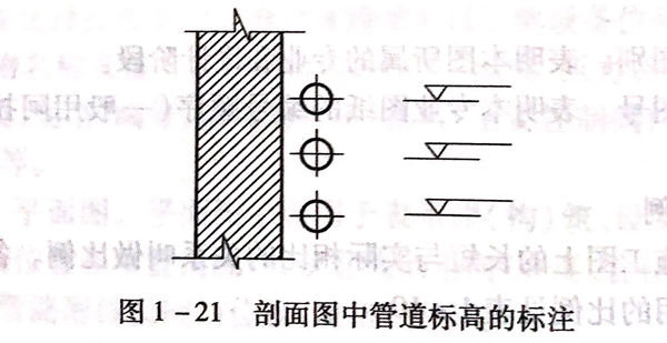 標(biao)(biao)高是標(biao)(biao)注(zhu)管道或建筑物高度的一種尺(chi)寸形(xing)式。標(biao)(biao)高符號(hao)的形(xing)式見圖1-20.標(biao)(biao)高符號(hao)用細(xi)實(shi)線繪(hui)制,三角形(xing)的尖(jian)端畫(hua)在標(biao)(biao)高引(yin)出線上,表示標(biao)(biao)高位置,尖(jian)端的指(zhi)向(xiang)可(ke)向(xiang)下(xia),也可(ke)向(xiang)上。剖面圖中(zhong)的管道標(biao)(biao)高按圖1-21標(biao)(biao)注(zhu)。