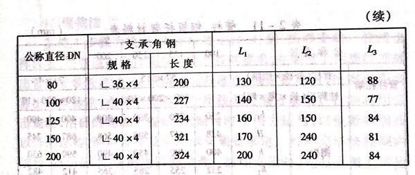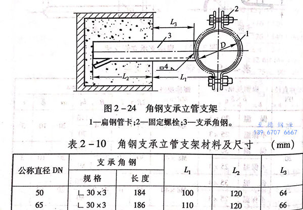 采用角鋼(gang)(gang)支(zhi)承立管支(zhi)架,如(ru)圖 2-24 所示。 支(zhi)承角鋼(gang)(gang)埋設在磚(zhuan)墻的(de)預留洞內,材料及尺寸(cun)見(jian)表(biao) 2-10 。