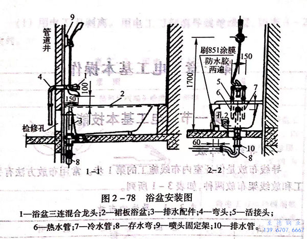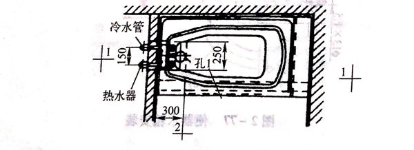 淋浴器噴(pen)管(guan)與成(cheng)套產品采用鎖母連接,并加墊(dian)橡(xiang)膠圈(quan);與現場組裝彎管(guan)連接一般為焊(han)接。淋浴器噴(pen)頭距地面不低于(yu)2.1m.浴盆安裝圖(tu)如(ru)圖(tu)2-78所示。