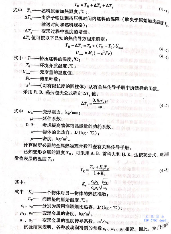 接著確定擠壓玻璃潤滑墊表層所達到的溫度 Tk ,其取決于變形金屬的終結溫度以及金屬與潤滑劑的熱物理常數。