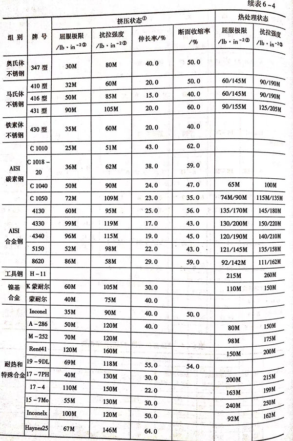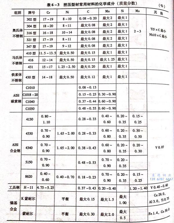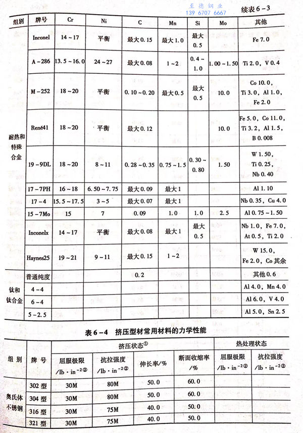常(chang)用擠壓型(xing)材材料的(de)化學成分和力學性能分別見表 6-3 和 表 6-4.