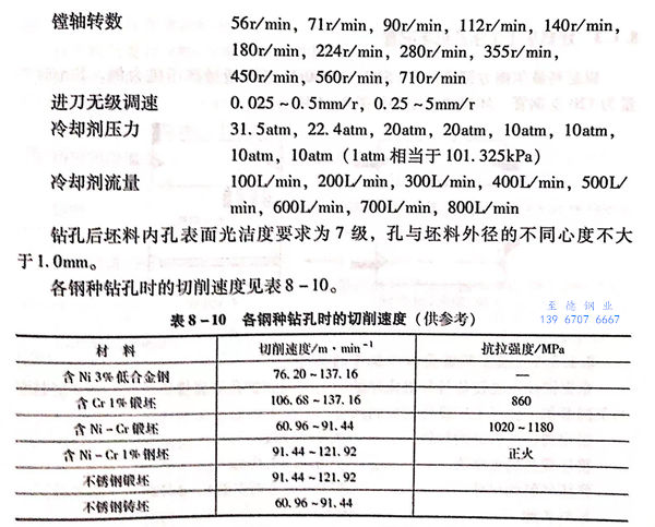 深(shen)孔鉆的(de)切(qie)削(xue)制度與(yu)被加工的(de)材料和所采用的(de)工具有關,其大致在以下范圍(wei)內: