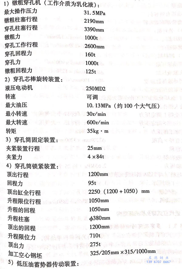 6. 31.5MN(3150t)擠壓車間(jian)10MN(1000t)立式穿孔機設(she)備性能: