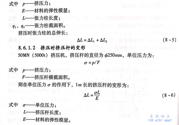 如圖8-31所示,25MN(2500t)擠(ji)壓(ya)機,張力(li)(li)柱長(chang)8300mm,前后橫梁厚度為1350mm的斷(duan)面受(shou)(shou)有預應力(li)(li),4根張力(li)(li)柱承受(shou)(shou)全部(bu)的擠(ji)壓(ya)力(li)(li),當(dang)擠(ji)壓(ya)力(li)(li)為p時,每根張力(li)(li)柱受(shou)(shou)有p/4的擠(ji)壓(ya)力(li)(li)。可以計算出在最大擠(ji)壓(ya)力(li)(li)作用下,張力(li)(li)柱的伸長(chang)。