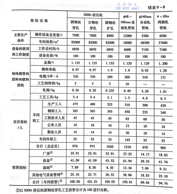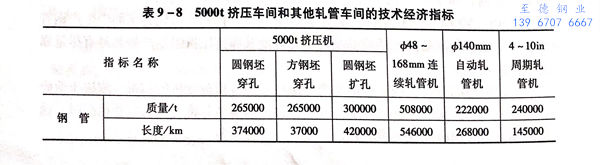 5000噸(dun)擠壓車間(jian)和其他(ta)軋管車間(jian)的技術經(jing)(jing)濟(ji)指標見表9-8(根據尼(ni)科波爾南方鋼(gang)管廠原始資料整理,供(gong)計算技術經(jing)(jing)濟(ji)指標用)。