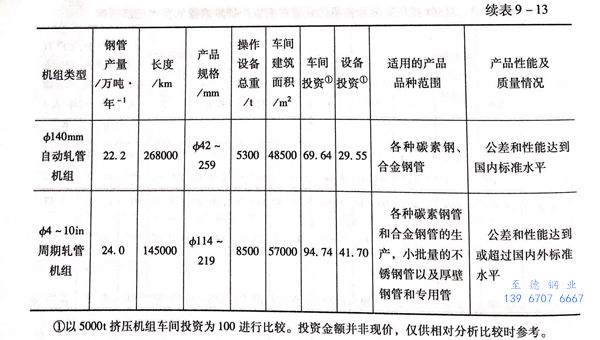 通(tong)過上述分析(xi)將(jiang)各種不(bu)銹鋼制管機組的主要(yao)工藝(yi)配置、應用(yong)范圍、產品規格及(ji)其質(zhi)量和性能(neng)、技(ji)術經濟指標進行了(le)總結,具(ju)體見表(biao)9-14.