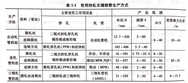 生(sheng)(sheng)(sheng)產(chan)(chan)中,按產(chan)(chan)品(pin)(pin)品(pin)(pin)種(zhong)(zhong)、規(gui)格(ge)和(he)生(sheng)(sheng)(sheng)產(chan)(chan)能力等(deng)條(tiao)件(jian)不(bu)同(tong)而選擇不(bu)同(tong)類(lei)型(xing)的(de)(de)(de)(de)(de)(de)軋(ya)(ya)管(guan)(guan)(guan)(guan)機(ji)(ji)。由于不(bu)同(tong)類(lei)型(xing)的(de)(de)(de)(de)(de)(de)軋(ya)(ya)管(guan)(guan)(guan)(guan)機(ji)(ji)軋(ya)(ya)管(guan)(guan)(guan)(guan)時軋(ya)(ya)件(jian)的(de)(de)(de)(de)(de)(de)運動學(xue)條(tiao)件(jian)、應力狀態條(tiao)件(jian)、道次變形量(liang)、總變形量(liang)和(he)生(sheng)(sheng)(sheng)產(chan)(chan)率(lv)(lv)等(deng)有所不(bu)同(tong),因此必須為(wei)它配(pei)備在變形量(liang)和(he)生(sheng)(sheng)(sheng)產(chan)(chan)率(lv)(lv)方面都匹配(pei)的(de)(de)(de)(de)(de)(de)穿孔機(ji)(ji)和(he)其他前(qian)后工序(xu)的(de)(de)(de)(de)(de)(de)設備。這樣以(yi)(yi)來,不(bu)同(tong)的(de)(de)(de)(de)(de)(de)軋(ya)(ya)管(guan)(guan)(guan)(guan)機(ji)(ji)相應構(gou)成了不(bu)同(tong)的(de)(de)(de)(de)(de)(de)軋(ya)(ya)管(guan)(guan)(guan)(guan)機(ji)(ji)組(zu)(zu)(zu)(zu)。熱軋(ya)(ya)無(wu)縫(feng)鋼(gang)管(guan)(guan)(guan)(guan)的(de)(de)(de)(de)(de)(de)生(sheng)(sheng)(sheng)產(chan)(chan)方法就(jiu)是以(yi)(yi)機(ji)(ji)組(zu)(zu)(zu)(zu)中軋(ya)(ya)管(guan)(guan)(guan)(guan)機(ji)(ji)類(lei)型(xing)分類(lei)的(de)(de)(de)(de)(de)(de),目前(qian)常用的(de)(de)(de)(de)(de)(de)熱軋(ya)(ya)無(wu)縫(feng)鋼(gang)管(guan)(guan)(guan)(guan)生(sheng)(sheng)(sheng)產(chan)(chan)方法見表(biao)1-1所示(shi)。一個機(ji)(ji)組(zu)(zu)(zu)(zu)的(de)(de)(de)(de)(de)(de)具體名稱以(yi)(yi)該機(ji)(ji)組(zu)(zu)(zu)(zu)品(pin)(pin)種(zhong)(zhong)規(gui)格(ge)和(he)軋(ya)(ya)管(guan)(guan)(guan)(guan)機(ji)(ji)類(lei)型(xing)來表(biao)示(shi),如Φ168mm連續軋(ya)(ya)管(guan)(guan)(guan)(guan)機(ji)(ji)組(zu)(zu)(zu)(zu)就(jiu)是指(zhi)其產(chan)(chan)品(pin)(pin)的(de)(de)(de)(de)(de)(de)最(zui)大外徑為(wei)168mm左(zuo)右的(de)(de)(de)(de)(de)(de)、軋(ya)(ya)管(guan)(guan)(guan)(guan)機(ji)(ji)為(wei)連續軋(ya)(ya)管(guan)(guan)(guan)(guan)機(ji)(ji)的(de)(de)(de)(de)(de)(de)機(ji)(ji)組(zu)(zu)(zu)(zu)。鋼(gang)管(guan)(guan)(guan)(guan)熱擠(ji)壓(ya)(ya)機(ji)(ji)組(zu)(zu)(zu)(zu)用擠(ji)壓(ya)(ya)機(ji)(ji)的(de)(de)(de)(de)(de)(de)最(zui)大擠(ji)壓(ya)(ya)力(噸位)或產(chan)(chan)品(pin)(pin)規(gui)格(ge)范圍(wei)來表(biao)示(shi)其型(xing)號(hao)。