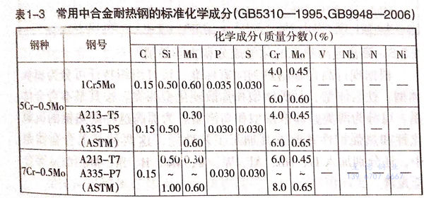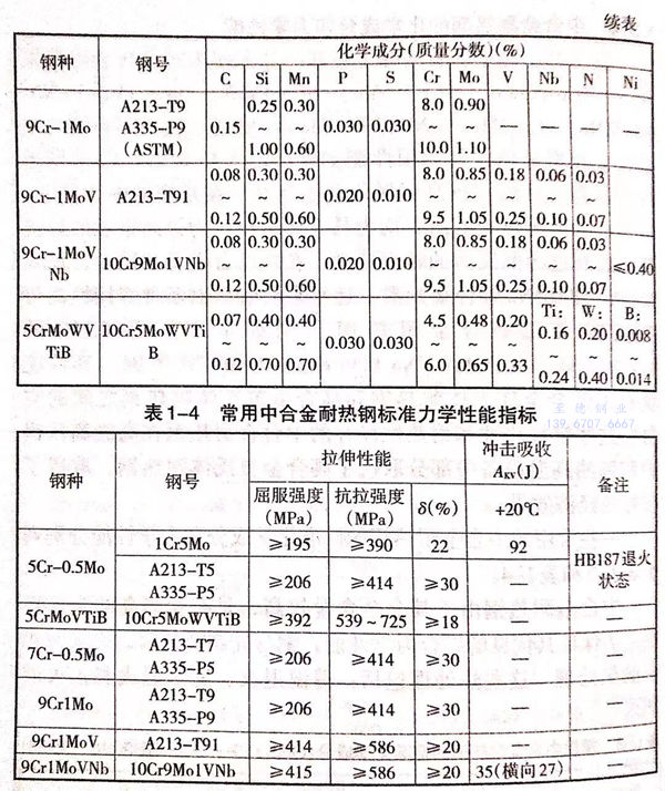 一些常用的(de)中合金耐(nai)熱鋼的(de)標準化學成分(fen)和力(li)學性能(neng)分(fen)別列于表(biao)1-3和表(biao)1-4。
