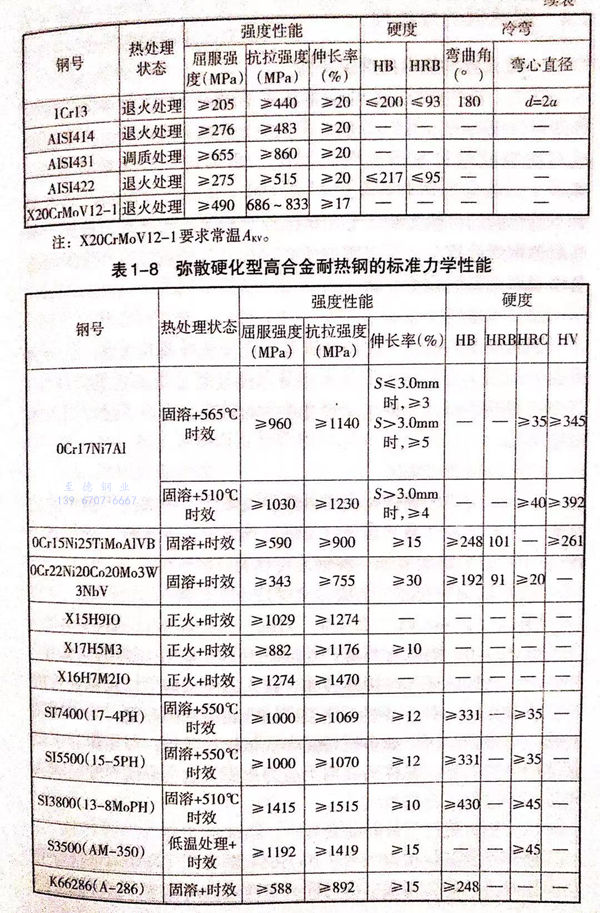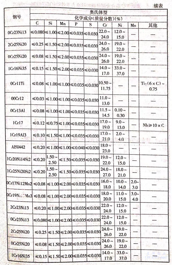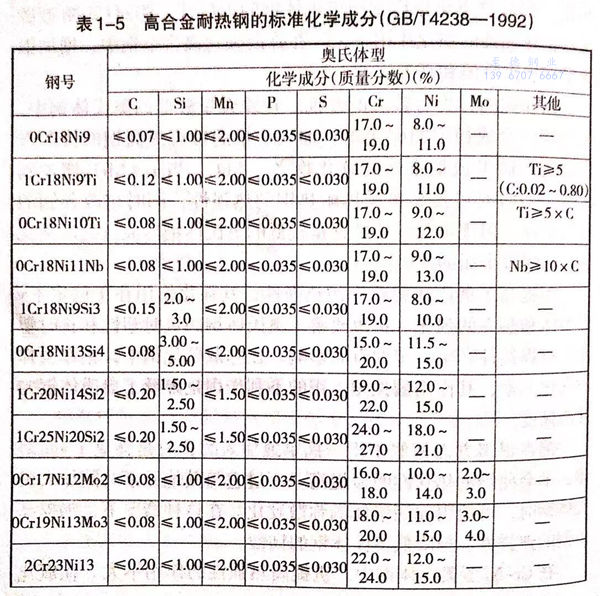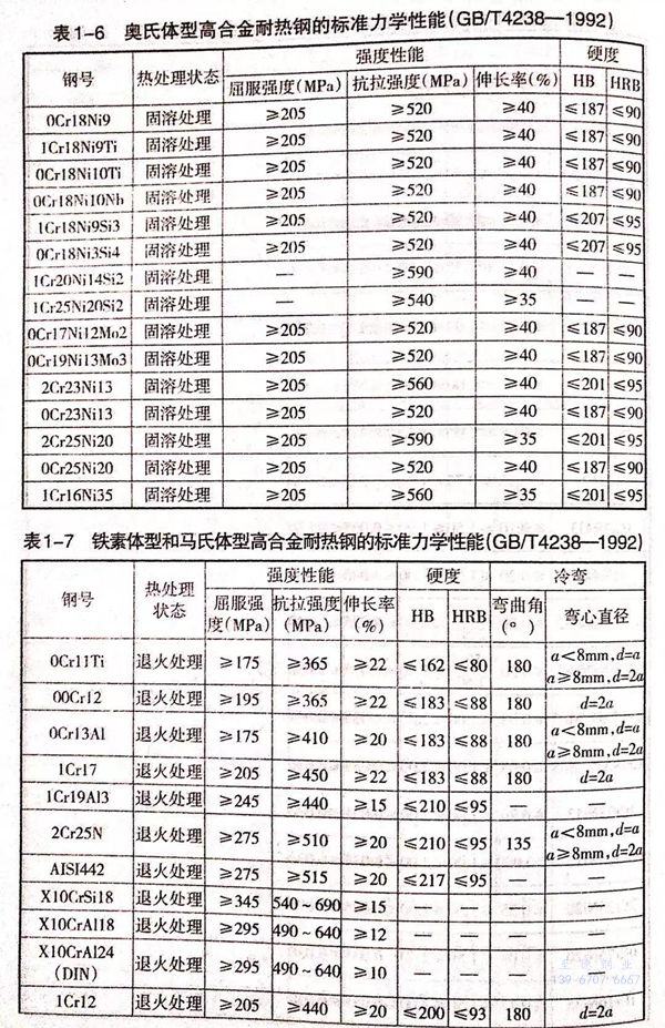 我國和(he)世界(jie)主(zhu)要工(gong)業國家常(chang)用的奧(ao)氏(shi)體(ti)型、鐵(tie)素體(ti)型和(he)馬氏(shi)體(ti)型高合金耐(nai)熱鋼的標準化(hua)學(xue)成分列于表1-5。這些鋼在供貨狀態下的力學(xue)性能(neng)分別列于表1-6、表1-7和(he)表1-8。