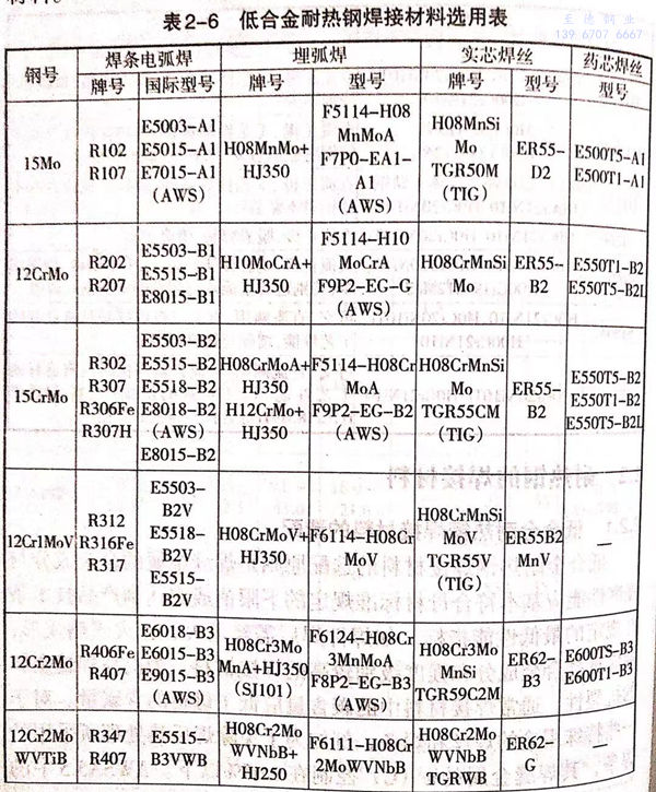對于在我國常用的低合金耐熱(re)鋼(gang)可按表2-6選配相應的焊接材料。
