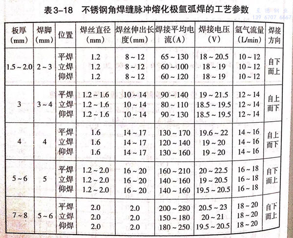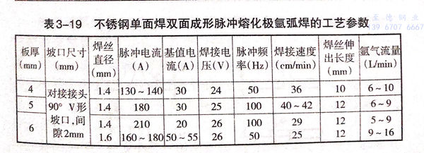 表3-16 平焊(han)位置不(bu)銹(xiu)鋼(gang)(18-8)脈沖(chong)熔化(hua)極(ji)氬弧(hu)焊(han)的工藝參數)