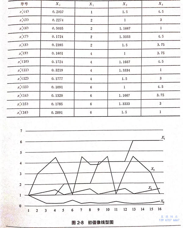 本案例中(zhong),各數據的(de)(de)無量綱化(hua)處理采用求初(chu)值像的(de)(de)方法(fa)。處理后的(de)(de)數據如表2-4所示,對(dui)應的(de)(de)線型圖(tu)如圖(tu)2-8所示。