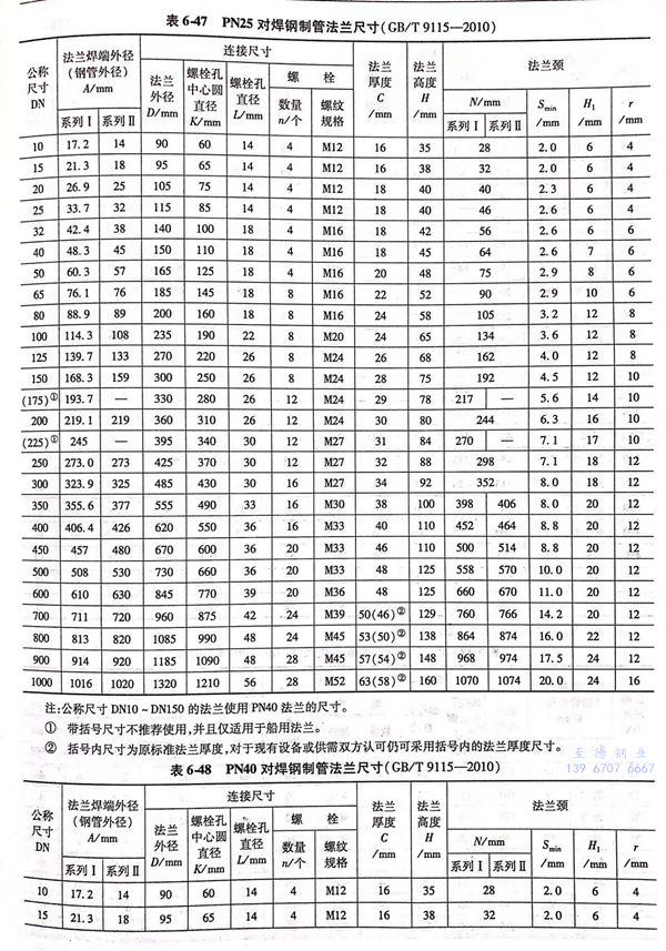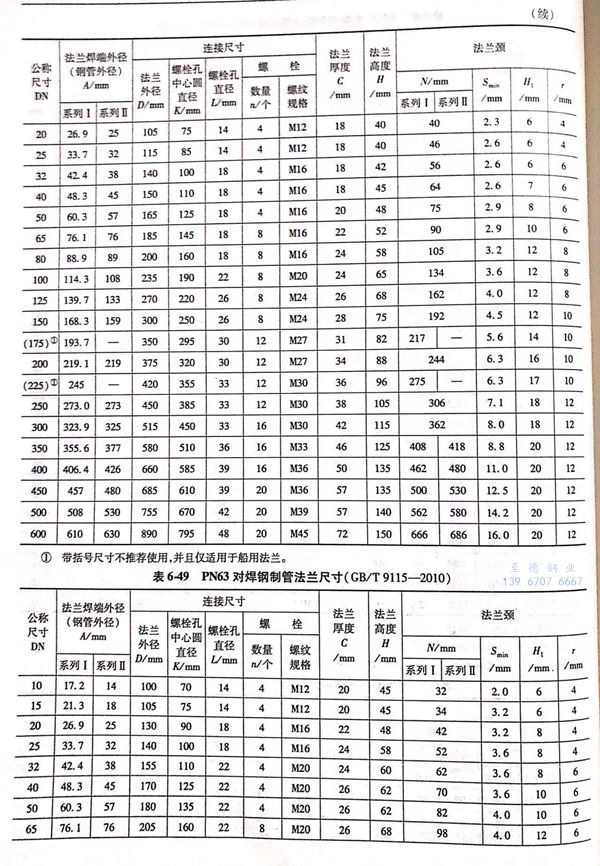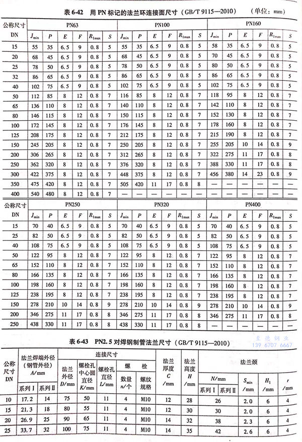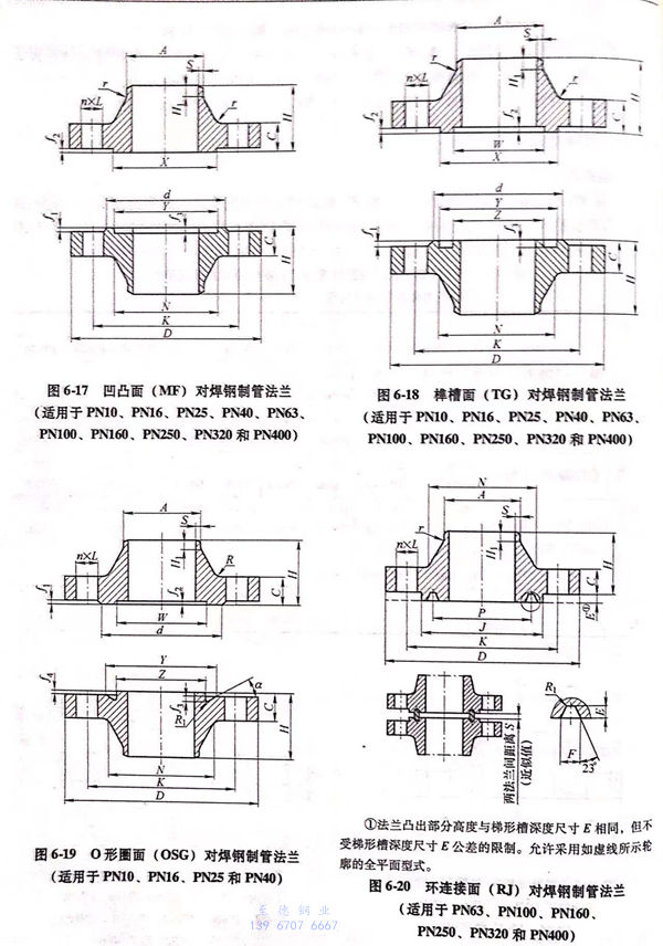 用PN標記的對焊鋼制管(guan)法蘭的密封面型式及適用的公稱壓力和公稱尺寸范圍見表6-40;用PN標記的對焊鋼制管法蘭的型式如圖6-15~圖6-20所示,法蘭密(mi)封面尺寸見表6-41和表6-42,法蘭結構尺寸見表6-43~表6-54。