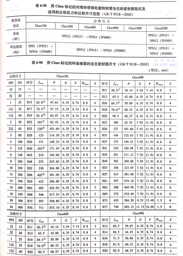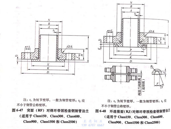 用(yong)Class標(biao)記的對焊環帶頸(jing)松(song)套鋼(gang)制管法(fa)蘭(lan)的密(mi)封(feng)(feng)面(mian)型式(shi)及適用(yong)的公稱壓力和公稱尺(chi)寸范(fan)圍見表6-95;用(yong)Class標(biao)記的對焊環帶頸(jing)松(song)套鋼(gang)制管法(fa)蘭(lan)的型式(shi)如圖6-47、圖6-48所示,法(fa)蘭(lan)密(mi)封(feng)(feng)面(mian)尺(chi)寸見表6-96,法(fa)蘭(lan)結構尺(chi)寸或(huo)尺(chi)寸見表6-97~表6-102。