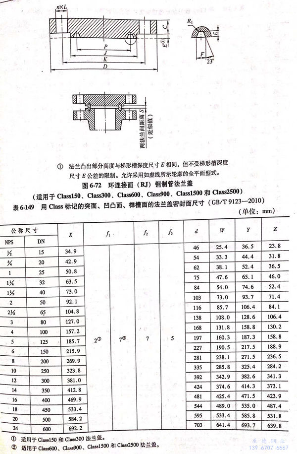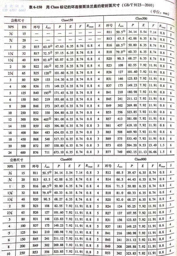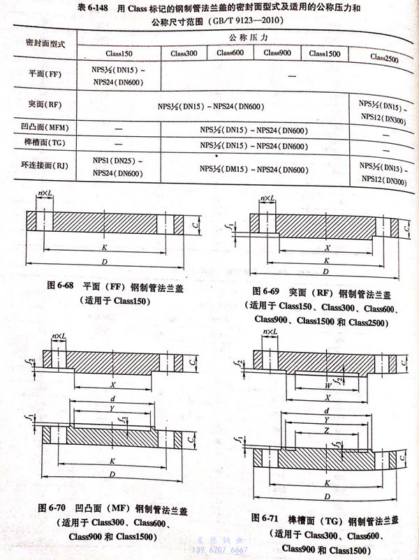 用Class標記(ji)的鋼制(zhi)(zhi)管法(fa)蘭蓋的密(mi)封(feng)面型式(shi)及適用的公稱壓力和(he)公稱尺(chi)寸(cun)范圍見(jian)(jian)表(biao)(biao)6-148;用Class 標記(ji)的鋼制(zhi)(zhi)管法(fa)蘭蓋的型式(shi)如圖6-68~圖6-72所示,密(mi)封(feng)面尺(chi)寸(cun)見(jian)(jian)表(biao)(biao)6-149~表(biao)(biao)6-150,法(fa)蘭結構尺(chi)寸(cun)見(jian)(jian)表(biao)(biao)6-151~表(biao)(biao)6-156。