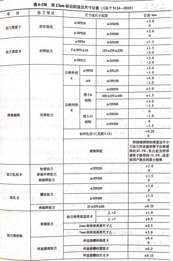 用(yong)Class 標記的法蘭尺寸(cun)公差(cha)見表(biao) 6-158