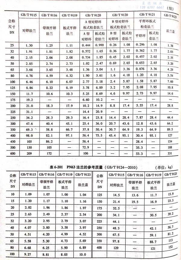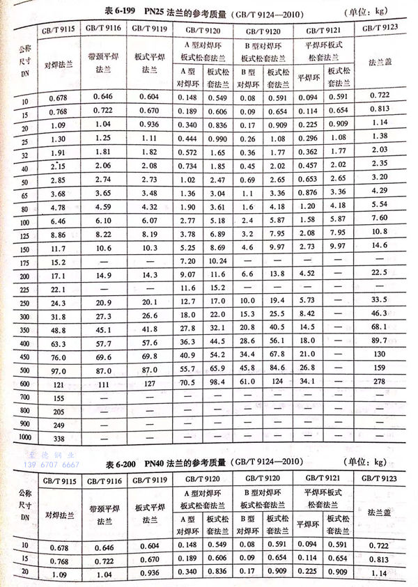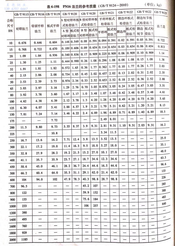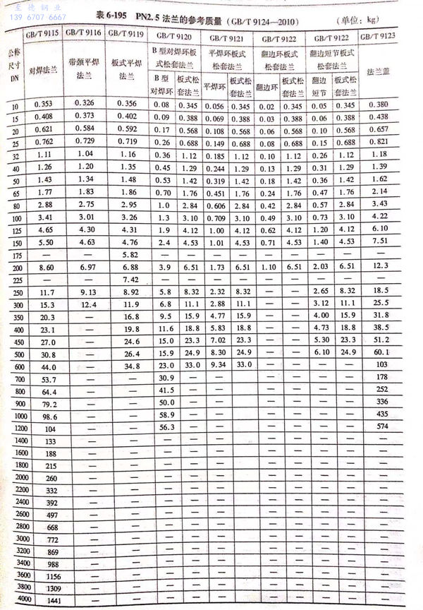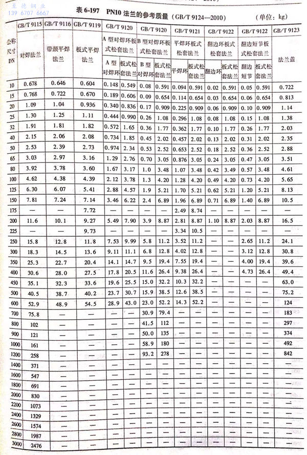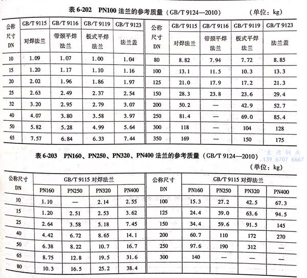 用(yong)PN標記的(de)法(fa)蘭(lan)(包括PN2.5~PN400共(gong)12個壓(ya)力級的(de)法(fa)蘭(lan))的(de)參考質量見表(biao)6-195~表(biao)6-203。