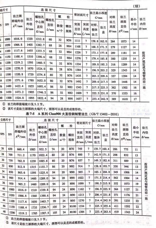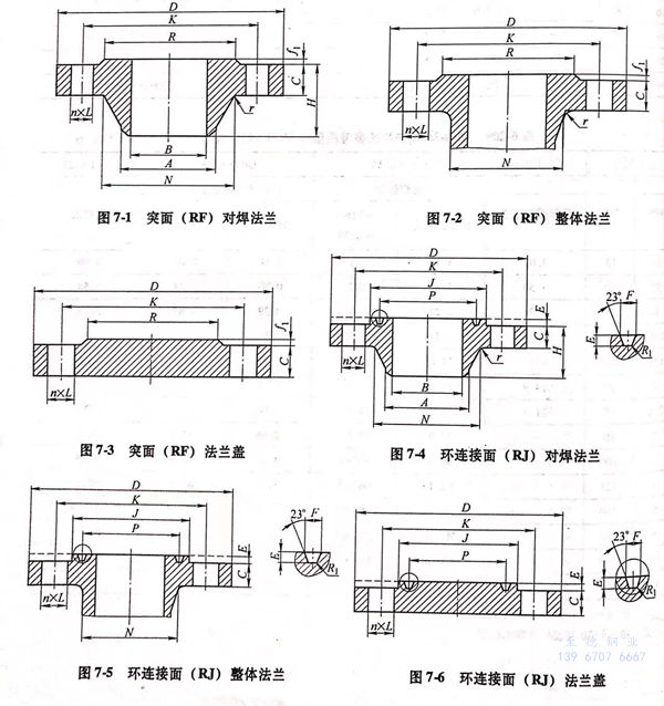 A 系列大口徑不銹鋼法蘭的尺寸見圖 7-1~圖 7-6 及表 7-1~表 7-5。
