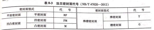壓力容器法蘭(lan)密封面型式主要有平面密封面、凹凸面密封面及榫槽密封面三種型式,其密封面代號見表8-3。