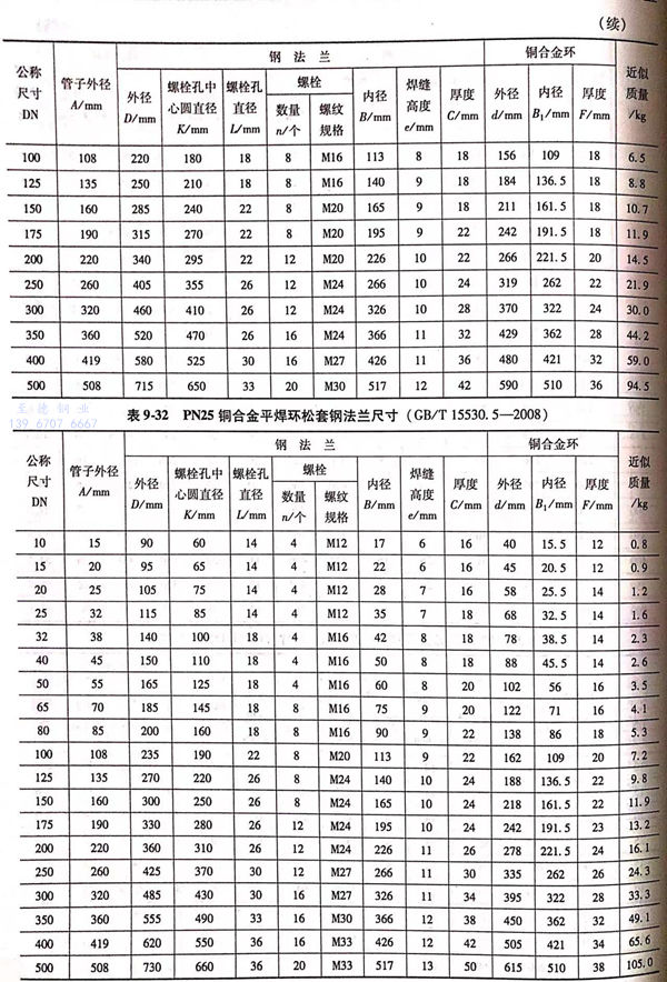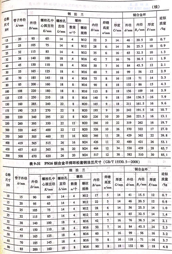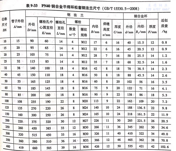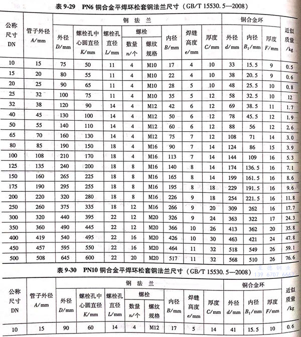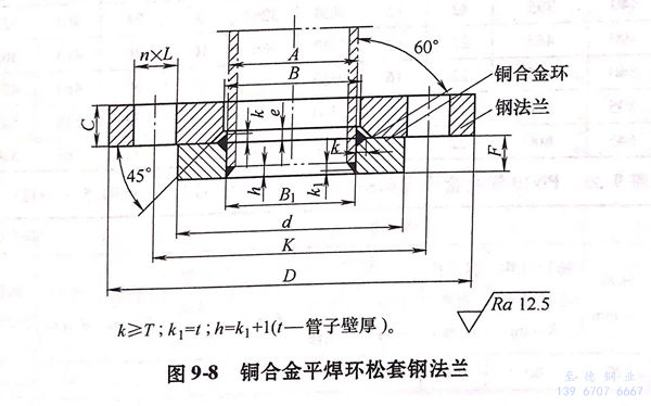 銅(tong)合金平焊環松套(tao)鋼法蘭(lan)的型(xing)式(shi)與尺寸(cun)見圖 9-8 和(he) 表表 9-29~表 9-33。