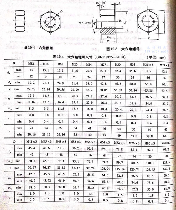 2. 螺母的規(gui)格、性(xing)能等級(ji)及常(chang)用材料牌號(hao)見(jian)表(biao) 10-5 。