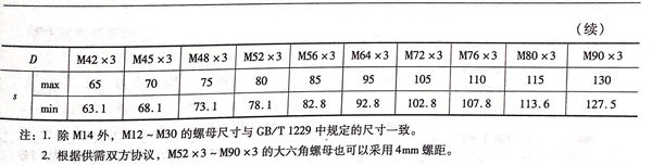 與等長(chang)雙頭螺(luo)柱、全螺(luo)紋(wen)螺(luo)柱配(pei)合使(shi)用(yong)(yong)的(de)管(guan)法蘭連接專用(yong)(yong)大六角(jiao)螺(luo)母的(de)型式與尺寸(cun)見圖(tu)10-5和表10-4,螺(luo)紋(wen)的(de)基本尺寸(cun)應符(fu)合GB/T196的(de)規(gui)定,其公(gong)差(cha)應符(fu)合GB/T197中(zhong)6H的(de)規(gui)定。其他(ta)技術(shu)要求(qiu)應符(fu)合GB/T 6170的(de)規(gui)定。