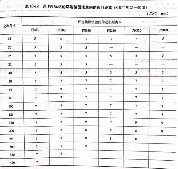 2. 環連接法蘭間的近似(si)距離(li)見(jian)表10-11和(he)表10-12.