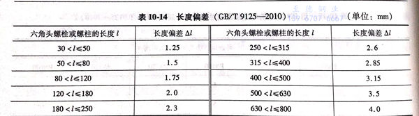 Δι-螺(luo)栓(shuan)或(huo)螺(luo)柱的長度偏差,數值按表10-14 確(que)定,單位為毫米(mm);