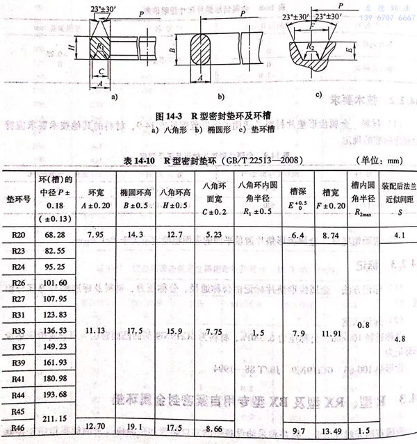 R型密(mi)封(feng)墊(dian)環及環槽如圖14-3所示,尺寸見表14-10.