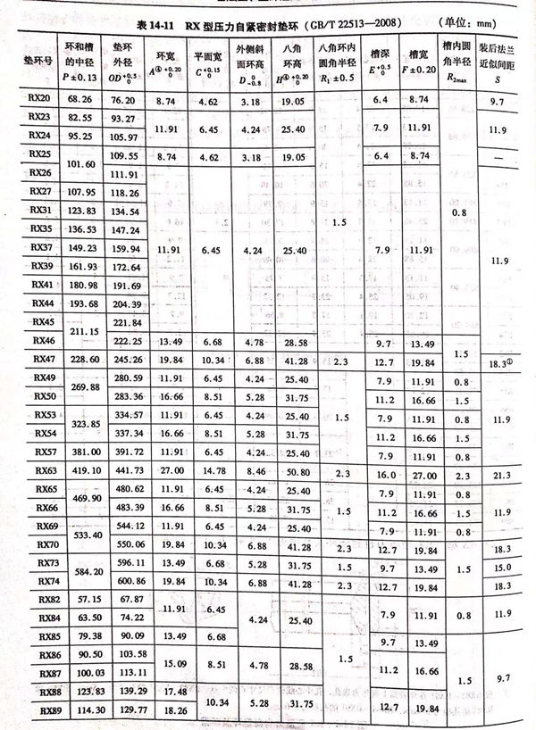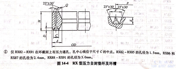 RX 型壓力(li)自封墊環(huan)及(ji)環(huan)槽(cao)見圖 14-4 ,尺(chi)寸見表 14-11。