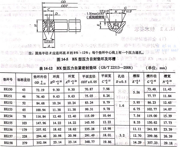 BX 型壓力自緊墊環及環槽如圖 14-5 所示,尺寸見表 14-12。