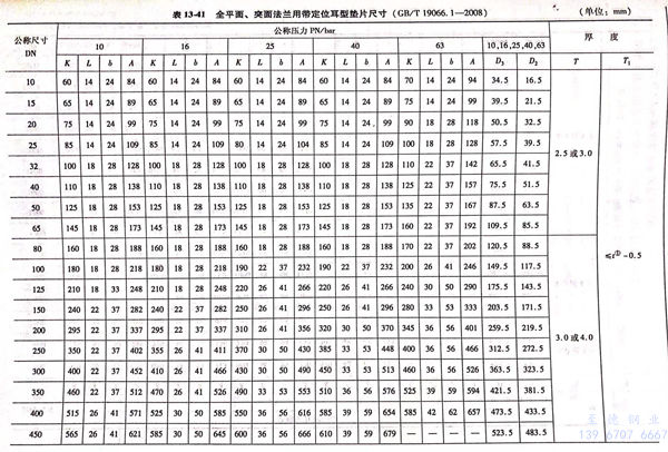 d. 全平(ping)面、突面法蘭(lan)用帶(dai)定位耳環型墊(dian)片尺(chi)寸見(jian)圖 13-25 和(he) 表 13-41。