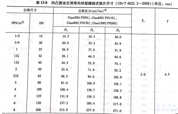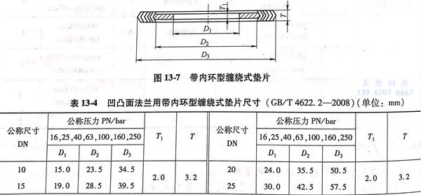 b. 凹凸面(mian)法蘭用帶內環型纏繞式墊(dian)片尺寸見圖 13-7 和表(biao)13-8。