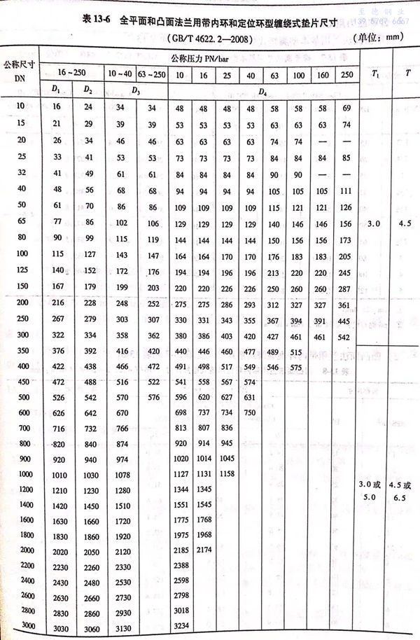 d. 全(quan)平面和凸面法蘭(lan)用(yong)帶內(nei)環和定位環纏(chan)繞式(shi)墊片的尺寸見(jian)圖(tu)13-9 和表13-6。