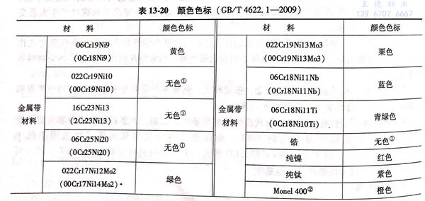 金屬(shu)帶材料以定(ding)位環外(wai)周(zhou)邊的(de)連(lian)續顏色(se)帶表示(shi);填充帶材料以定(ding)位環外(wai)周(zhou)邊的(de)間隔色(se)條(tiao)表示(shi);DN40及以上規(gui)格的(de)纏(chan)繞(rao)式(shi)墊片以四條(tiao)間隔90°的(de)色(se)條(tiao)表示(shi),小于DN40的(de)纏(chan)繞(rao)式(shi)墊片用(yong)(yong)對稱兩條(tiao)色(se)條(tiao)表示(shi)。所用(yong)(yong)顏色(se)可按(an)表13-20的(de)規(gui)定(ding)或按(an)用(yong)(yong)戶要求(qiu)而定(ding)。