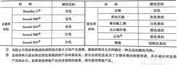 當用戶有要求時,纏(chan)繞式墊片還應標以可識別(bie)金(jin)屬帶和(he)填充帶材料(liao)的顏(yan)色色標。