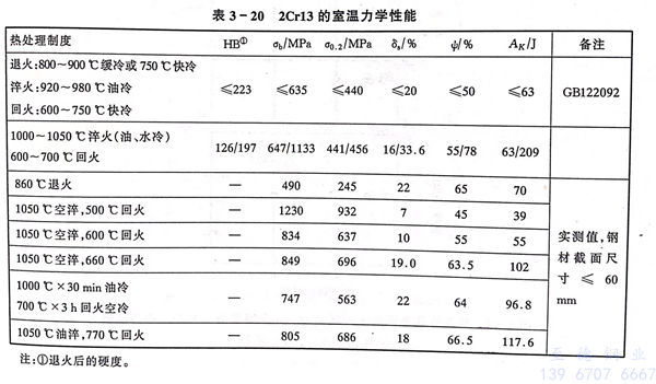 2Cr13、20Cr13、420 不銹鋼(gang)的(de)化學成分見表3-19。