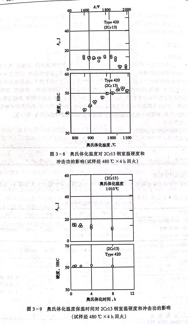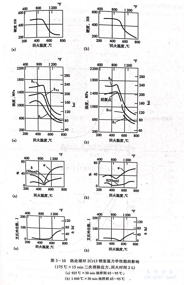 2Cr13、20Cr13、420 不銹鋼(gang)的(de)室溫(wen)力學性能(neng)見(jian)表3-20。熱處理與室溫(wen)力學性能(neng)的(de)關系見(jian)圖3-8至圖3-10。