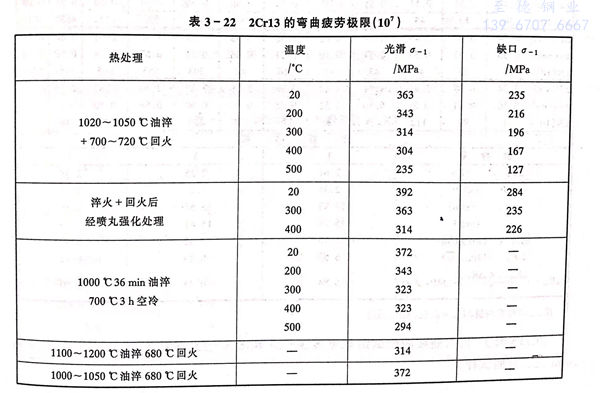 2Cr13、20Cr13、420 不銹鋼(1000℃油淬(cui),700℃回火)的高溫疲(pi)勞和腐蝕疲(pi)勞行為分別(bie)見(jian)(jian)圖(tu)3-13和圖(tu)3-14。2Cr13鋼光(guang)滑和缺口試(shi)樣彎(wan)曲(qu)疲(pi)勞極限見(jian)(jian)表3-22。