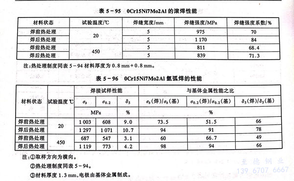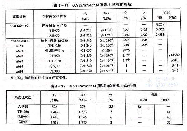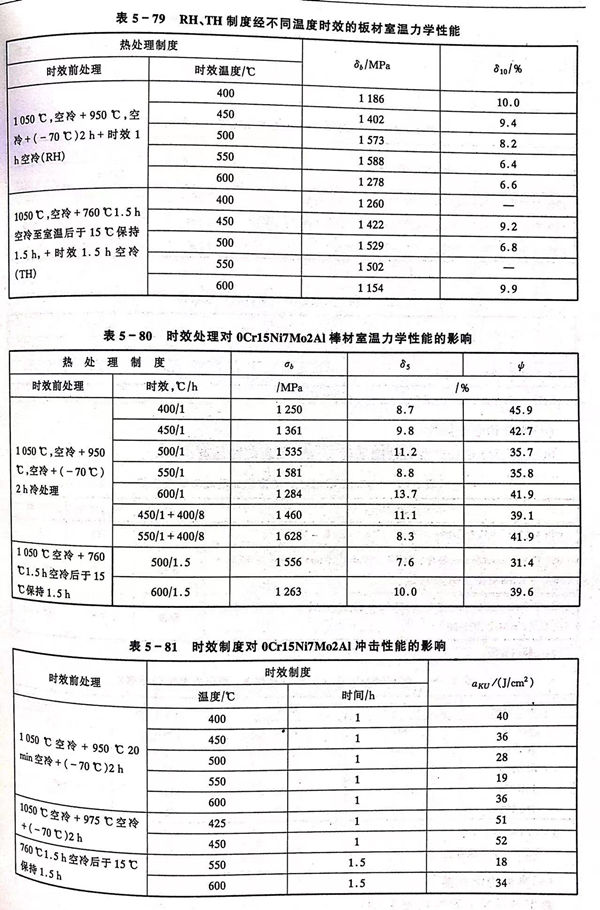 07Cr15Ni7Mo2Al、PH15-7Mo 不銹鋼的化學成(cheng)分見表5-76。