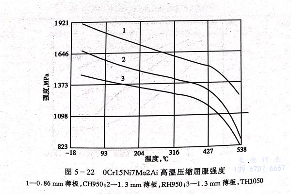 07Cr15Ni7Mo2Al、PH15-7Mo 不銹鋼高溫中沖擊和壓縮強度見圖 5-21 和 圖 5-22。